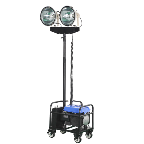 适用场所: ●适用于电力、消防、铁路、市政等行业户外移动照明。 ●适用于各种户外施工作业、事故处理、抢险救灾、维护抢修等作移动照明和应急照明。 结构特点: ●灯盘由2个150W气体放电灯灯头组成,照明亮度高,覆盖范围大,照射距离远,灯泡寿命长。 ●灯具采用三节伸缩杆作为升降调节方式,手动操作可根据照明高度要求迅速升降灯盘,最大升起高度为2.5米;每盏灯可单独做上下左右调节,整个灯盘可以伸缩杆为轴心做360°水平旋转,实现大范围的泛光照明和相对集中的投光照明。 ●使用发电机组供电时,一次注满燃油可连续工作6小时以上;使用220V市电供电则可以实现长时间连续工作。 ●灯具由灯架和发电机座上下两部分组成,轻便并易于组合、拆卸、移动和搬运,操作简单,适用性强。 ●灯具整体采用各种优质金属材料制作,结构紧凑,质量稳定,性能可靠,能在恶劣环境和气候条件下正常工作。 ●为满足用户个性化的需求,如本产品的标准配置不能满足用户的工作需要,我司可在灯盘的灯头数量、功率、泛光或聚光、伸缩气缸升起高度及发电机的配备上按用户要求做出调整。 |
