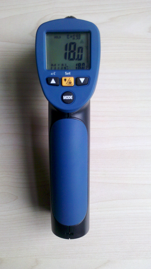 具有激光瞄准,带被光源显示器和自动读值锁定及自动关机功能
