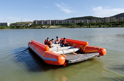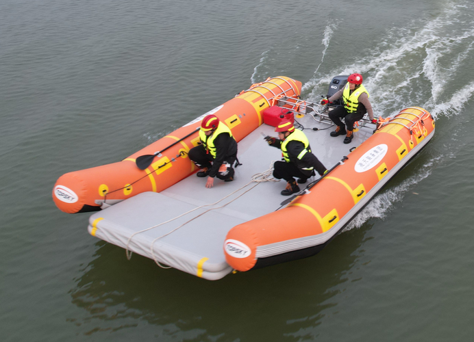 充气救援运输船适合水域救援时用来运输人员、货物、小型车辆、机械等。也可用来运送救灾物资、救灾用照明与电力设备等