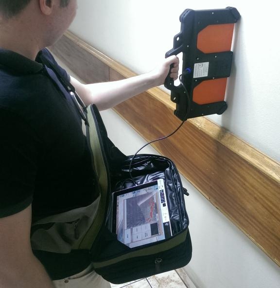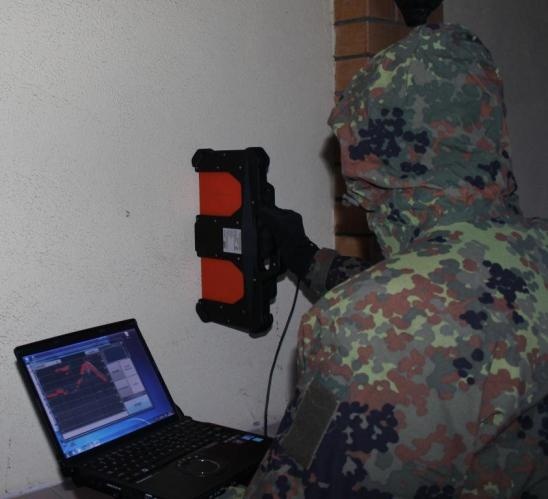 该装置的操作原理是操作者将天线模块导向墙壁。 然后即可在计算机屏幕上观察当物体在墙后移动时反射信号的雷达图的变化。