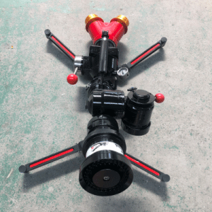 该炮可以手动控制与自摆转换快速切换,射程远,配有流量自动调节炮头,当流量压力较小时,仍能保持一定的喷射距离。体积小,移动方便,操作简便,机动性强,非常适用于各类大中型石油化工生产基地、各类易燃易爆、有毒有害火灾、各种大中型建筑的火场抢险救灾。炮体采用轻质铝合金材质,表面硬质阳极氧化后喷漆处理;炮脚锻造铝合金材质黑色氧化处理,4只支撑脚可折叠便于存放,拉开脚撑可定位作业,且脚撑拉开、折叠都有弹簧卡扣定位.防滑钨钢钉,脚撑上都装有防滑钨钢钉,防止水炮在作业过程中滑动,配有直杆式开关,可快速开启或关闭水流;