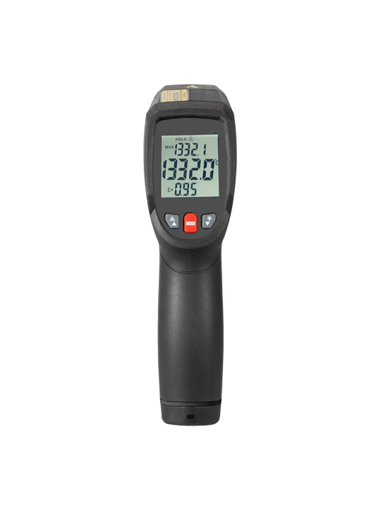 它具有激光瞄准,带背光源显示器。最大值,最小值,数据保持,高低温报警,发射率可调及自动关机功能。该手持式红外测温仪可以用来测试传统的接触式红外测温仪很难测试的物体表面温度。
