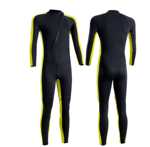 腰部有织带,用于调节舒适度。配水母服 1 套。适当位置设置有氯丁橡胶材质的魔术贴。腰部有织带,用于调节舒适度。水母服采用橡胶保暖面料,连体设计的潜水水母服,水母服保温面料厚度在1.5mm以上。水母服可自浮于水面,自重1kg,材质吸水后重量1.5kg。领口、袖口、脚口设置防水收口设计。膝盖手肘等部位加厚增设防刮伤摩擦防护布料。面料透气贴合速干。拉链处设置防夹层,并在末端设计魔术贴。衣着外观可根据需求进行设计定制。