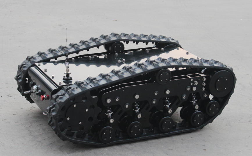 开发空间大、行驶更加平稳。是一款通用型履带式机器人底盘车,整车采用克里斯蒂独立悬挂设计,更好的做到重载避震。内部搭载高扭矩减速电机,为底盘提供强劲动力,迎难而上。精准的底盘高度搭配合理功率的电机,使得该车型具有低重心,通过性强、重载避震运行平稳等优点,广泛用于复杂环境下的机器人移动解决方案。