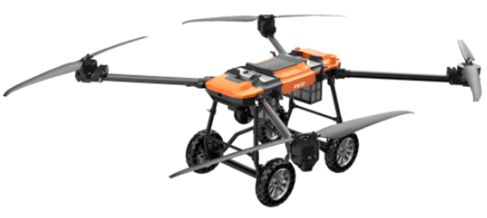 本无人机为北京极悦娱乐智能装备集团研发的多用途陆空两栖无人机平台,采用四旋翼机身设计,载重大,续航长,并且机体折叠标准化负载接口、集成航电系统,还支持选配雷达避障系统。同时,该无人机具备陆空两栖功能,可以在地面行驶,行走系统可快拆。满足消防灭火、应急教援、物资运输、环境监测等不同场是的行业应用。