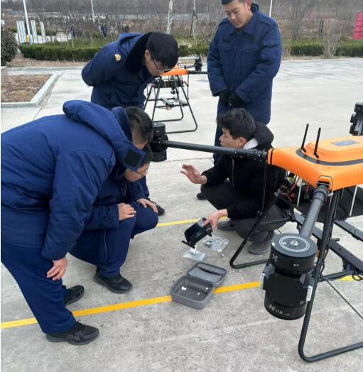 LT-F50-MH陆空两栖高层建筑系留灭火无人机,是我公司针对城市高层消防需要而最新自行设计的,该无人机通过高空喷水灭火作业,充分实现了操作人员与火灾现场远距离分隔的优点,能很好地保护灭火人员的人身安全。该无人机具有结构新颖,性能稳定可靠,操作灵活,维修方便、喷水距离远、流量大等特点,同时,该无人机具备陆空两栖功能,可以在地面行驶。该无人机可装载在消防车上,能快速启动升空,通过特制高压水带与消防车水罐连接,消防车水罐内部高效泡沫/水基灭火剂输送到无人机平台,在水枪喷口水平喷射出去,达到灭火的效果。