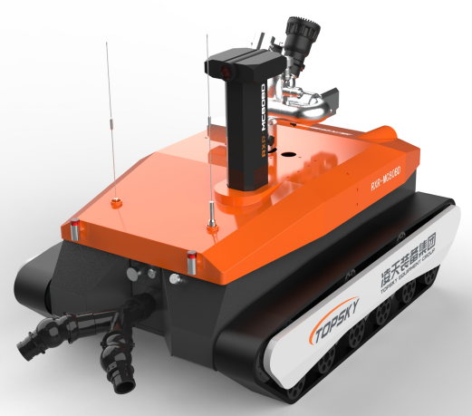 RXR-MC80BD防爆消防灭火侦察机器人作为特种机器人的一种,采用锂电池电源作为动力源,使用无线遥控的方式远距离操控消防灭火机器人。可使用于各种大型石油化工企业,隧道、地铁等不断增多的油品燃气、毒气泄漏爆炸、隧道、地铁坍塌等灾害隐患多发地,灭火机器人在抢险救援中发挥举足轻重的作用,主要替代消防员在危化火场或浓烟火灾现场救援的专用设备。本产品具备灭火、音视频侦察、有毒有害气体侦察、灾区环境侦察功能。