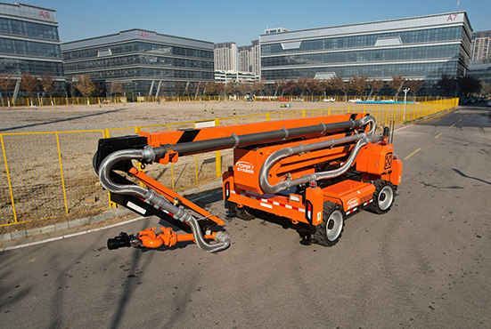 进行灭火消防炮喷射作业时最大高度可达20.5米,最大水平延伸可达11米,实现凌空对火场的高空压制喷射需求。