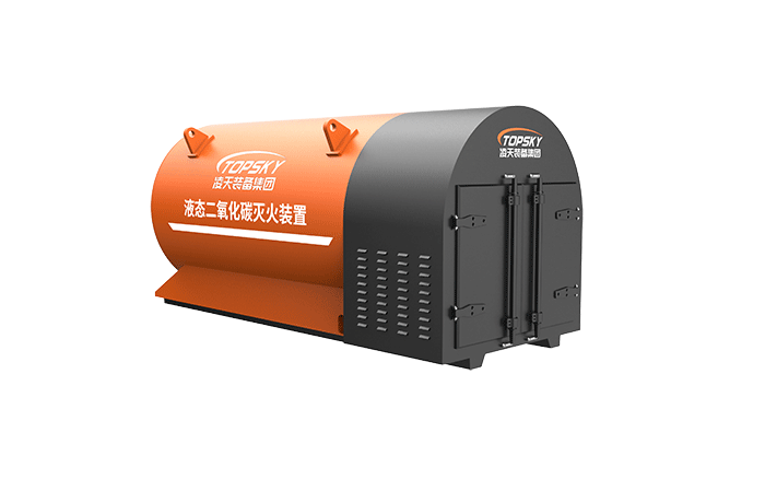液态二氧化碳灭火装置,采用平板车为运载平台,搭载液态二氧化碳灭火模块,采用液态二氧化碳为灭火剂,运输至井下火区近附,经自增压调控系统实现罐内稳压,并通过远距离输送管路将液体从罐内向密闭火区喷射,利用其急速膨胀气化和吸热效率高的物理特性,可实现惰性降氧,吸热降温,吸附阻化等功能,从而可快速进行井下煤层自燃火灾的预防与扑灭等。