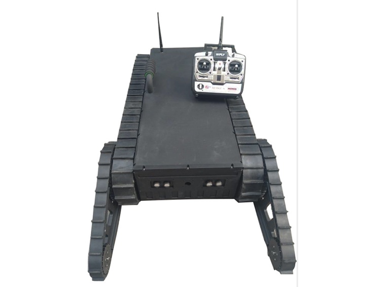 单摆臂机器人底盘车是一款通用型履带式机器人底盘车,可满足小型侦查类机器人越野性能及平稳性能的超高要求,方便用户搭接设备、扩展应用,内部搭载高扭矩直流无刷减速电机,为底盘提供强劲动力,迎难而上,精准的底盘高度搭配合理功率的电机,采用前2摆臂+履带的结构形式,履带和摆臂适合复杂地形,可以提高越障性能,且做出快速作战部署。