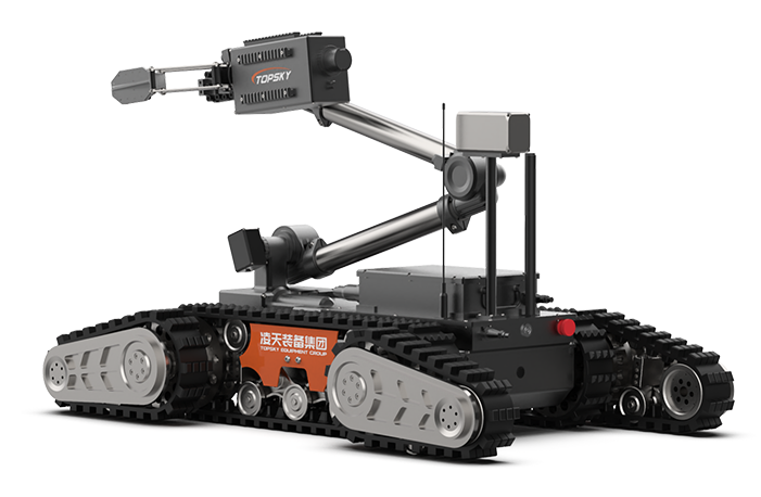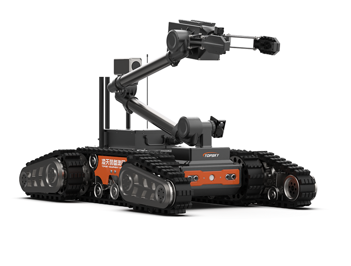 排爆机器人主要是用来处理爆炸物相关工作的排爆式机器人,也可用于侦察人难以达到的地形的一种机器人。6自由度排爆机械手能实现不同角度旋转,最大可抓举55KG的重物,机械臂装载爆炸物销毁器,可现场摧毁爆炸物,底盘采用履带+双摆臂结构,能适应各种地形快速作战部署。同时机器人配备有线控制可以网络干扰情况下通过有线远距离作业。排爆机器人可与配件一同使用,例如销毁器,爆炸物的远程引爆控制系统等。