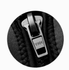 前置拉链和腰部踝部拉链,拉链使用采用树脂材质,使穿脱便捷。