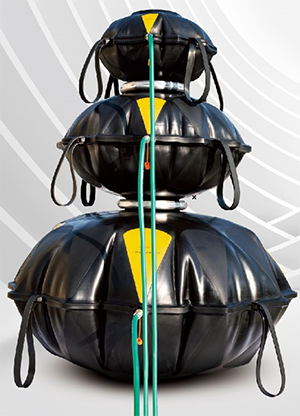 可连接式球形起重气垫拥有大的举升高度及举升能力;便于操作;气垫的连接无需工具;气垫可单独使用或组合使用