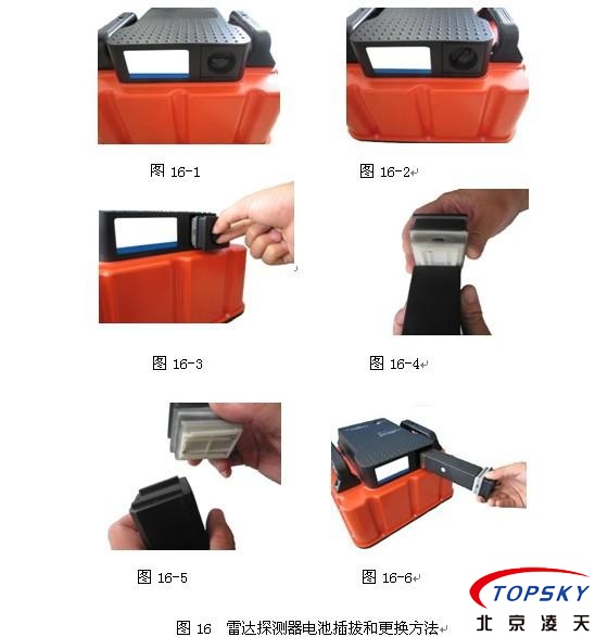 YSR25本安型雷达生命探测仪的雷达探测器配备了两块可充电锂离子电池,其插拔、更换步骤如下,见图16。