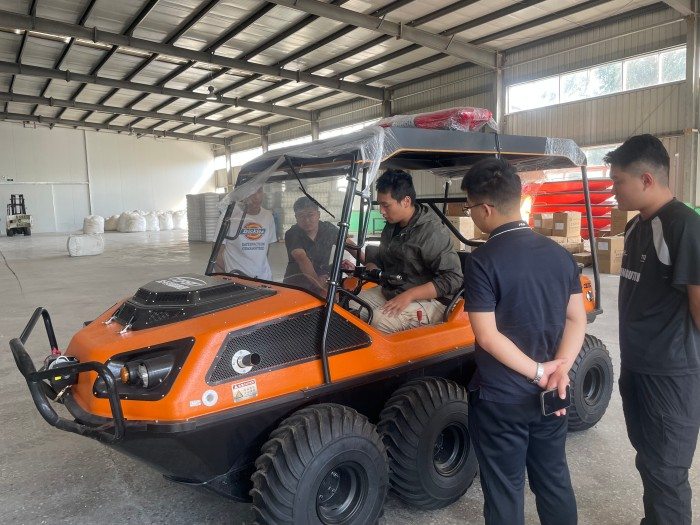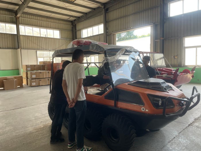 以完成可靠的野外应急救援为目的,该水陆两栖全地形车可提供一种安全的运输方式和可靠的运载平台,产品可以在山地环境、湿地环境、沼泽环境、水面环境、丛林环境等多种工作环境下,实现全天候连续作业。并且可以在灾害现场巡逻勘察、运送受伤人员、并有效实施援救。