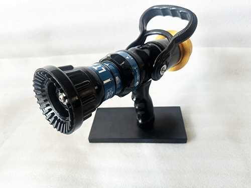 大流量水枪枪体为铝合金或同等质量以上材料,枪身及把手等位置具备阻燃、耐磨、无后坐力等功能;
