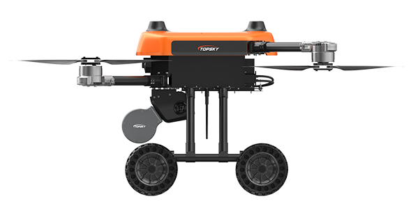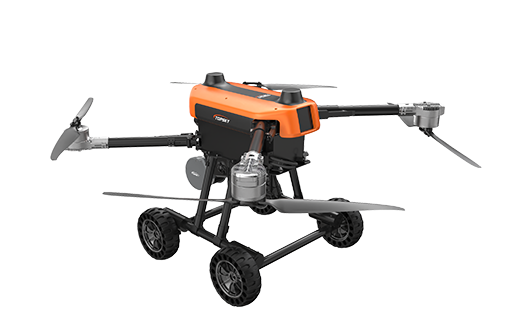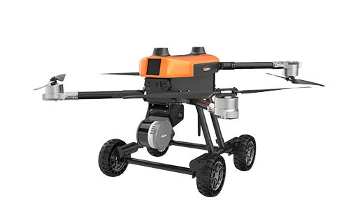 本无人机为北京极悦娱乐智能装备集团研发的陆空两栖三维侦测建模无人机,采用四旋翼机身设计,载重大,续航长,并且机体折叠标准化负载接口。同时,该无人机具备陆空两栖功能,可以在地面行驶。